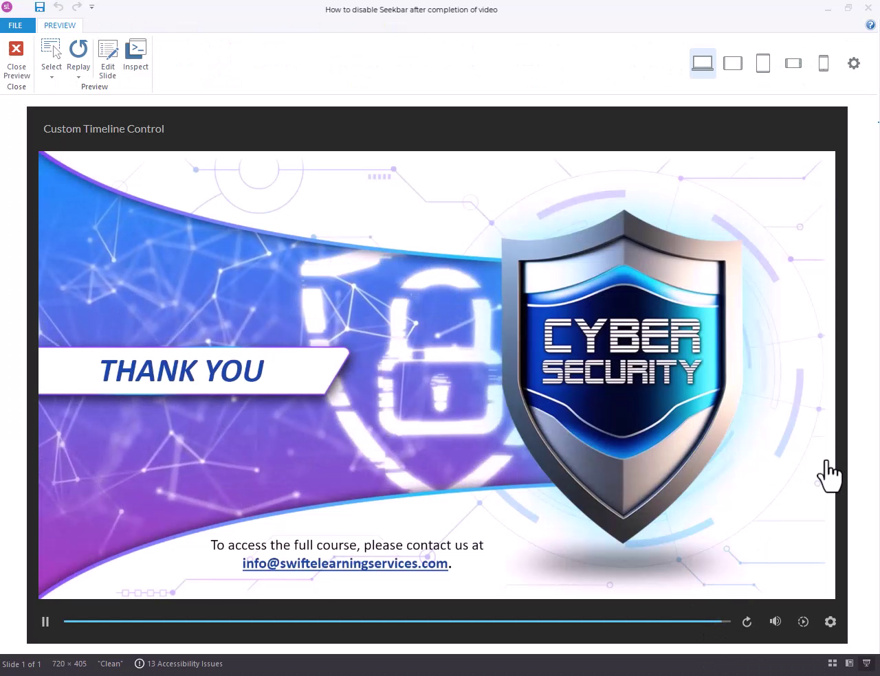 Click Preview to watch how to disable Video Seekbar in Articulate Storyline 360 Using JavaScript.