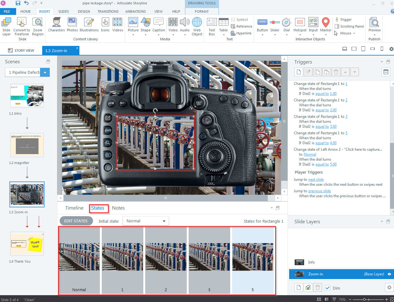 Zoom-in interaction is one of the best customized elearning interactions in Articulate Storyline 360. This type of interaction can be majorly used for learning and training purpose where learner can be immersed with real time interactions so that to retain the knowledge for a longer period. Instead of a simple text and image presentation you can give learner zoom-in interaction option to view the image in detail especially when the learner is viewing the course in mobile.