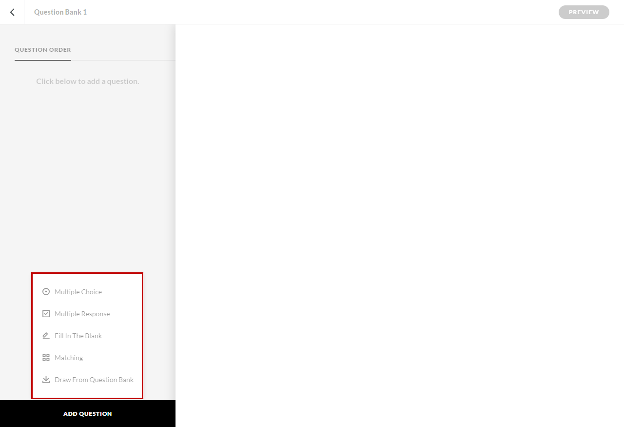 Click the “Add Question” button at the bottom left and select a “Draw from Question Bank”.
