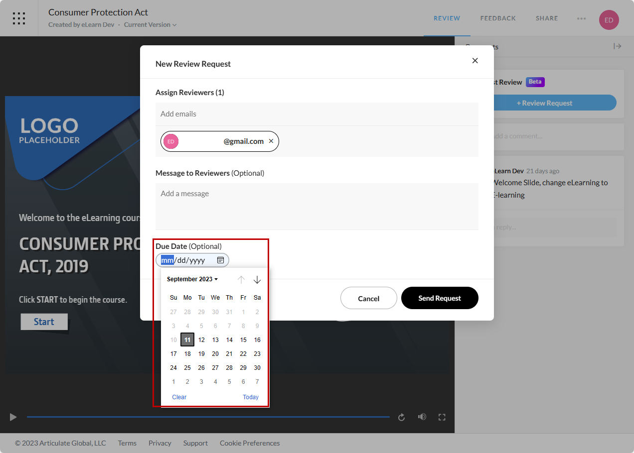 Feel free to input a personalized message for your reviewers. For instance, if your content is password-protected, you can include the password in your message if necessary.
